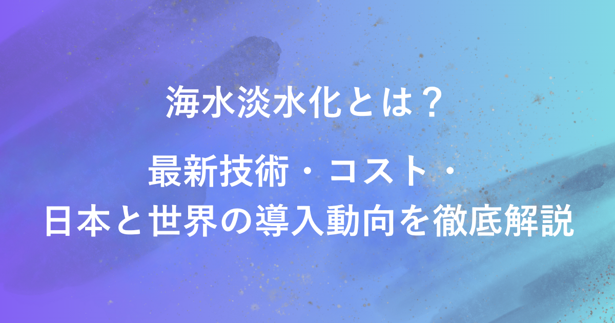 この構造的な水不足問題に対し、「無尽蔵に存在する海水を淡水に変える」海水淡水化技術は、最も根本的かつスケーラブルな解決策として位置づけられています。