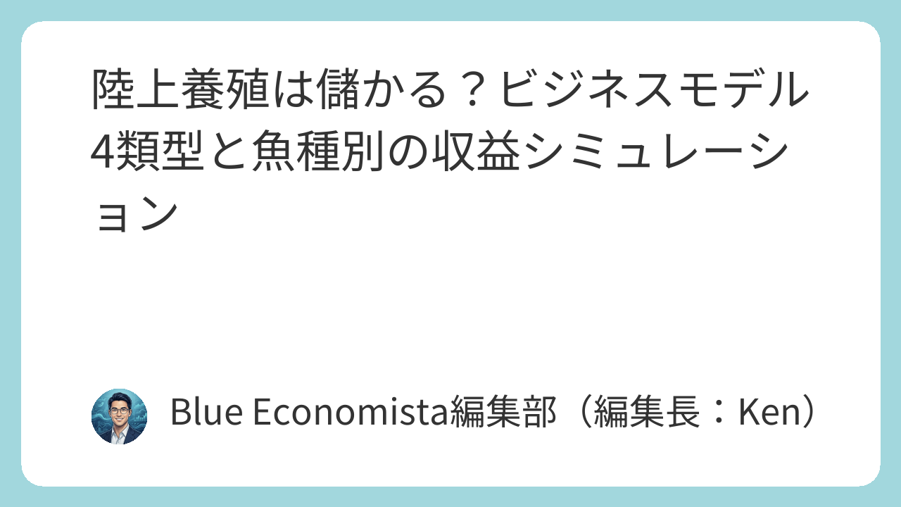 本記事では、陸上養殖の収益構造を売上・コスト・利益に分解したうえで、魚種別の収益シミュレーション、4つのビジネスモデル類型、そして利益を最大化するための5つの戦略を体系的に解説します。「儲かるかどうか」を感覚ではなく数字とモデルで判断したい方に向けた、実践的なガイドです。